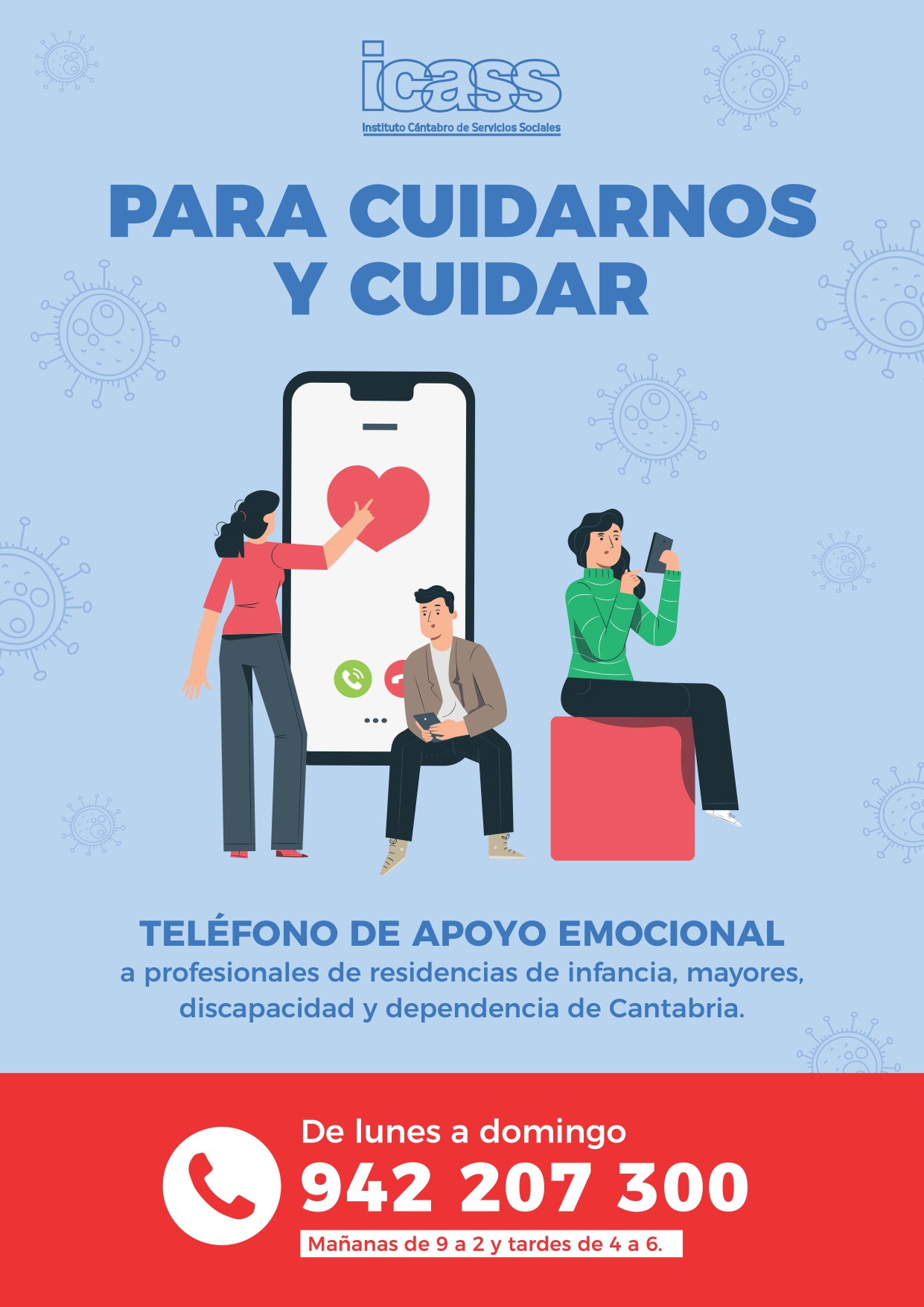CARTEL INFORMATIVO DEL TELÉFONO DE APOYO EMOCIONAL QUE VA A PONER EN MARCHA EL ICASS COMO APOYO A LOS PROFESIONALES DE LAS RESIDENCIAS ANTE LA SITUACIÓN COVID-19