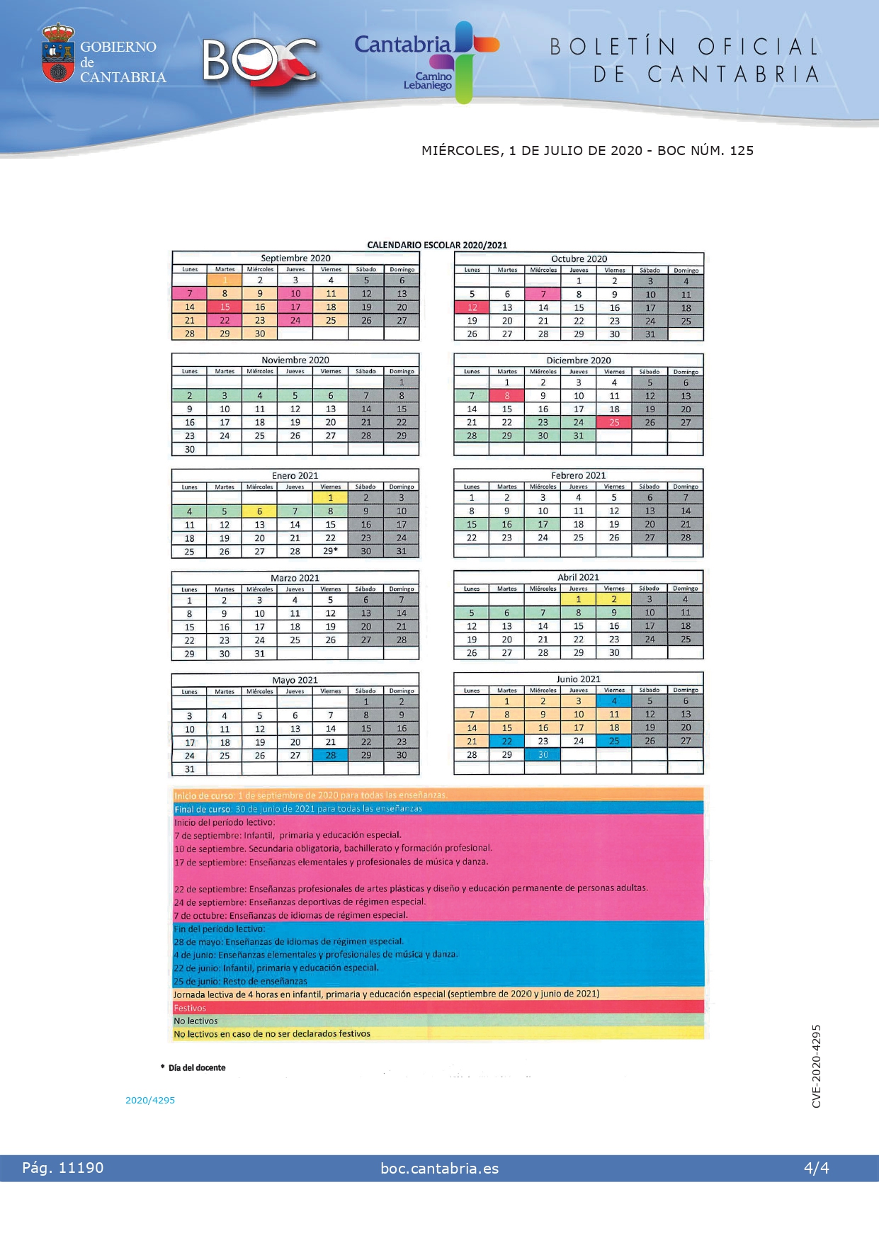 CONSEJERÍA DE EDUCACIÓN, FORMACIÓN PROFESIONAL Y TURISMO CALENDARIO ESCOLAR PARA EL CURSO 2020-2021 PARA CENTROS DOCENTES NO UNIVERSITARIOS