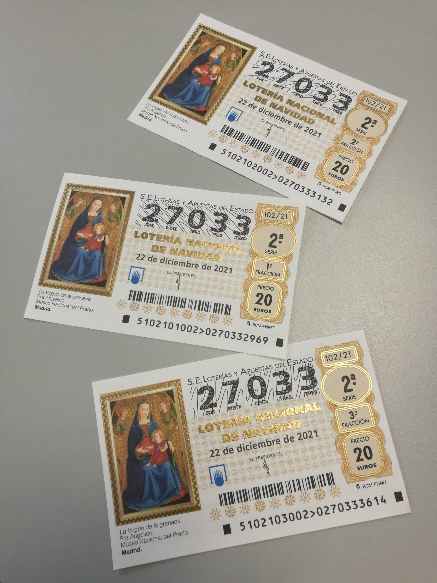 Como todos los años hemos reservado décimos de la Lotería de Navidad , el nº 27033 , en la Administración de la Plaza de las Estaciones de Santander .sin recargo