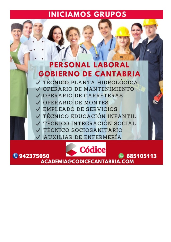 ACADEMIA CODICE NOS INFORMAN QUE COMIENZAN LOS CURSOS PARA LA PREPACION DE LAS OPOSICIONES DEL PERSONAL LABORAL EN LA ADMINISTRACION GENERAL