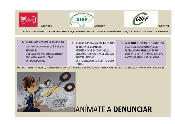 CONOCE Y DEFIENDE TUS DERECHOS LABORALES, EL PERSONAL DE SUSTITUCIONES TAMBIÉN LOS TIENE, EL CONVENIO COLECTIVO TE PROTEGE