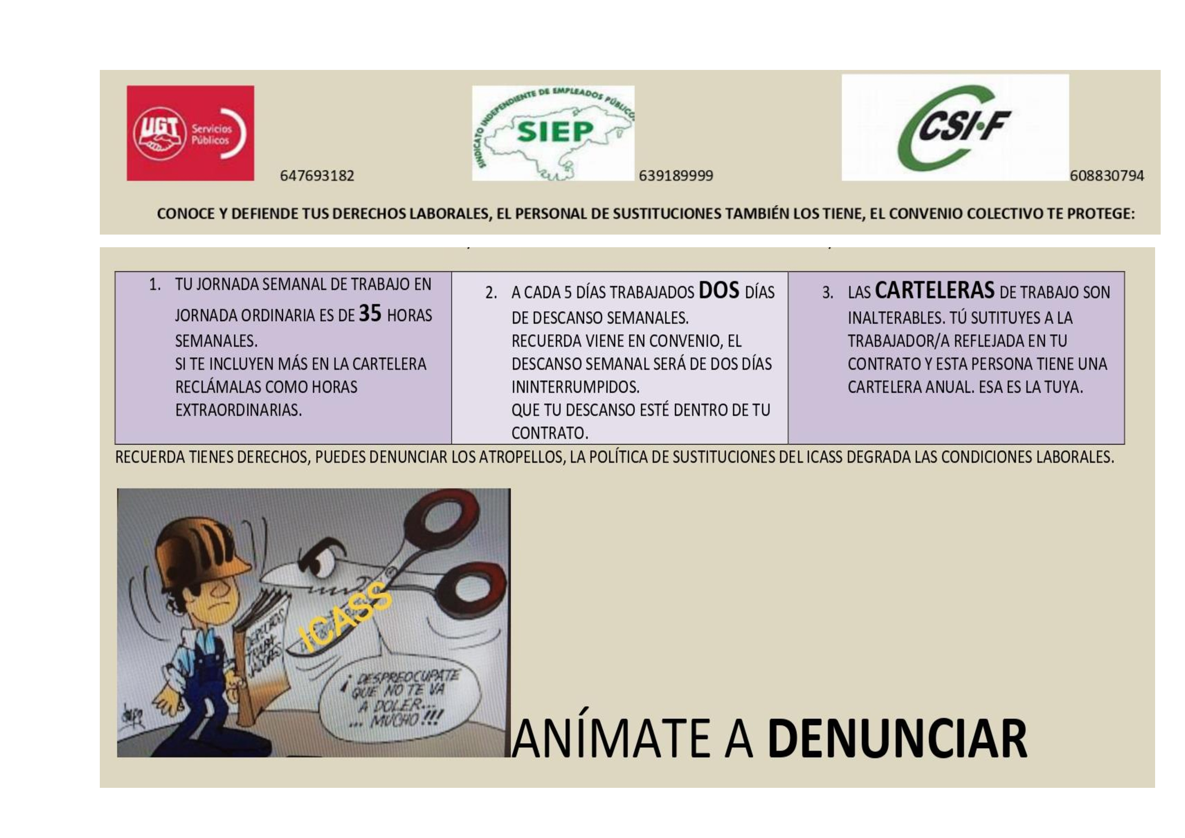 CONOCE Y DEFIENDE TUS DERECHOS LABORALES, EL PERSONAL DE SUSTITUCIONES TAMBIÉN LOS TIENE, EL CONVENIO COLECTIVO TE PROTEGE