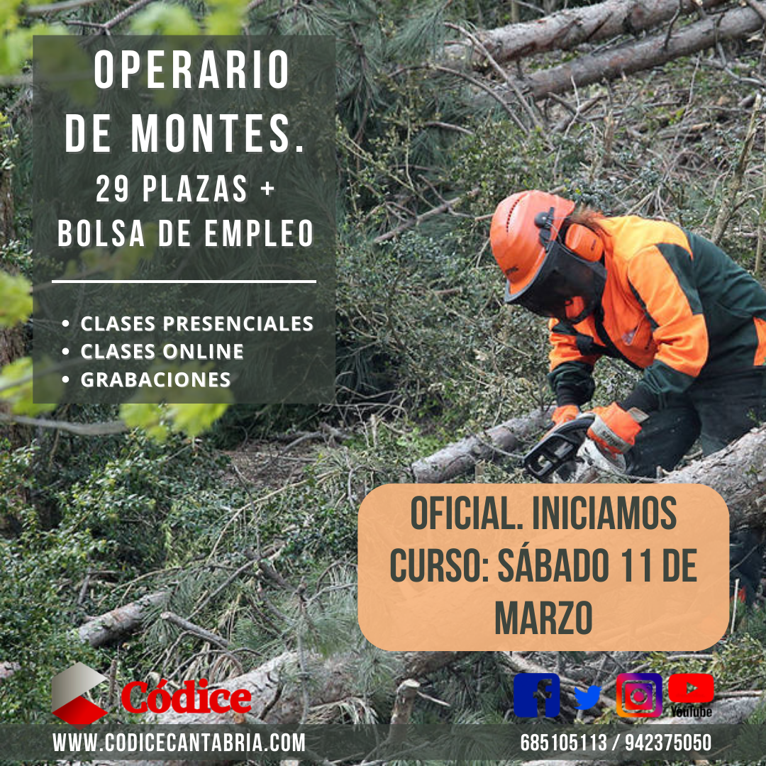 Te informamos que la academia códice inician curso de las oposiciones de operario de montes y técnico de planta hidrológica el próximo sábado 11 de marzo.