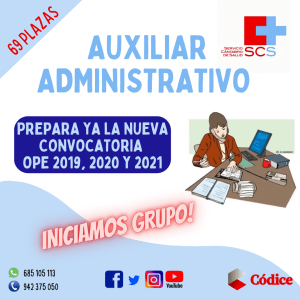 SCS AUXILIAR DE ADMINISTRATIVO69 PLAZAS CORRESPONDIENTES A LAS OPE 2019, 2020 Y 2021.