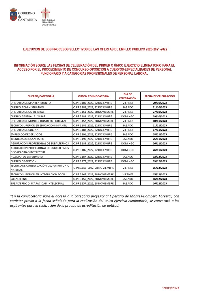 CALENDARIO OPES PERSONAL FUNCIONARIO Y PERSONAL LABORAL 2023: CRONOGRAMA