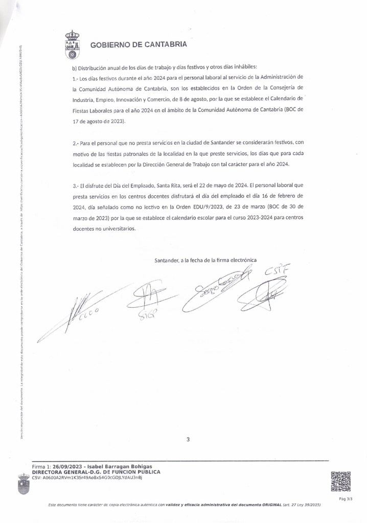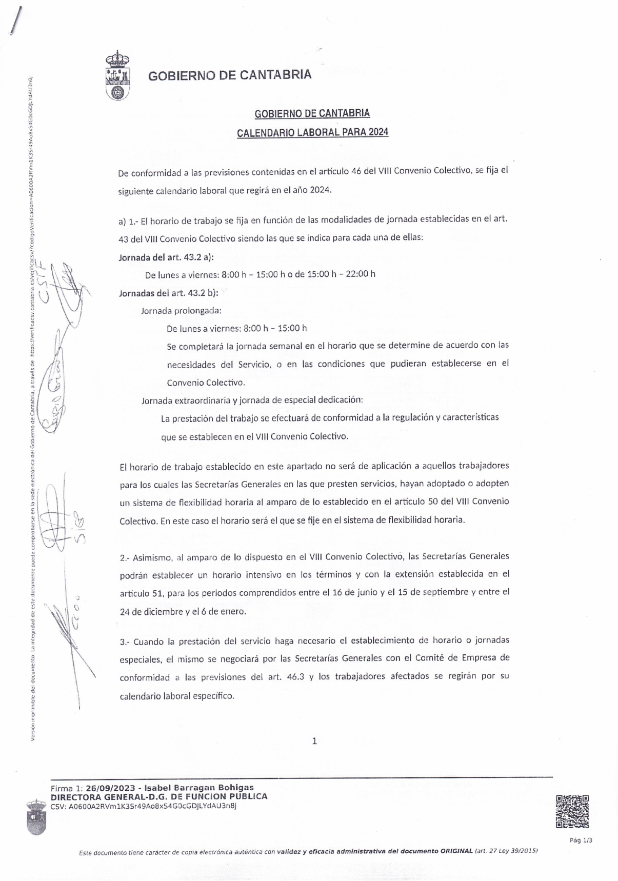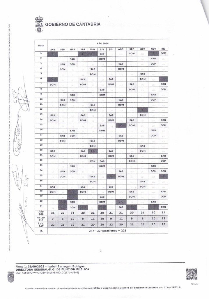 LABORALES: CALENDARIO LABORAL 2024 FIRMADO