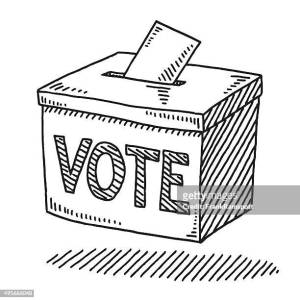 Hand-drawn vector drawing of a Vote Ballot Box. Black-and-White sketch on a transparent background (.eps-file). Included files are EPS (v10) and Hi-Res JPG.